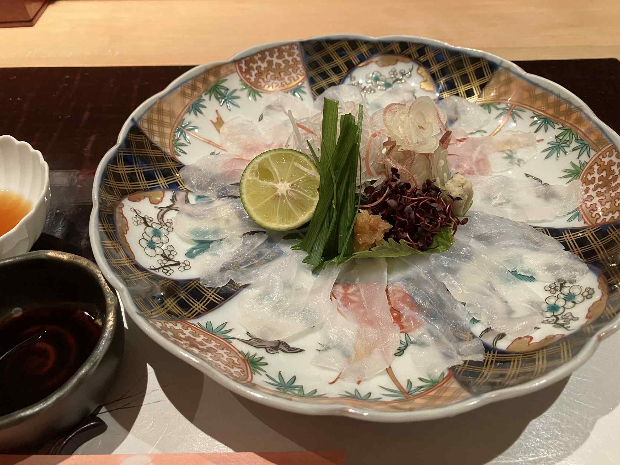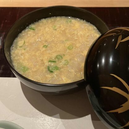 内容:茶碗蒸し、前菜盛り合わせ、クエの薄造り、クエの唐揚げ、クエ鍋、雑炊、デザート